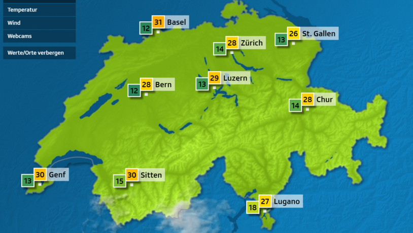 Bevor wir am 23. September offiziell den Herbst begrüssen dürfen, wird es nochmal so richtig heiss. Gemäss den aktuellen Wettermodellen gibt es am Mittwochnachmittag 30 Grad im Wallis und in Basel. Auch der Kanton Graubünden bleibt nicht verschont.