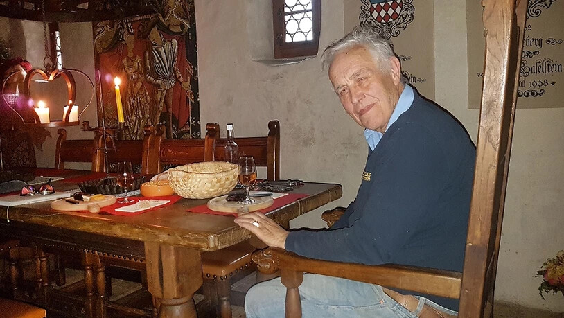 Der Kamin zieht ordentlich; dafür hat der Hausherr beim Bau gesorgt. Grosse Buchenscheite verbrennen prasselnd und erhellen die unmittelbare Umgebung. Sonst nur Kerzen auf dem wuchtigen Tisch. Durch die zwei Fensterscharten dringt kaum Licht. Hier also soll unser Gespräch stattfinden. Felix Nöthiger verbindet die Begrüssung im «Kleinen Saal» der Burg Haselstein gleich mit einer kleinen Lektion in mittelalterlicher Alltagskunde. «Wären Sie Ende des 13. Jahrhunderts hier gewesen, hätten an einem gewöhnlichen Wochentag sicher keine Kerzen gebrannt.» Er zeigt ein kleines Talglämpchen, wie es die ersten Bewohner vermutlich benutzt hatten. «Am liebsten nahm man Hammelfett, das stank weniger», weiss der Experte.
