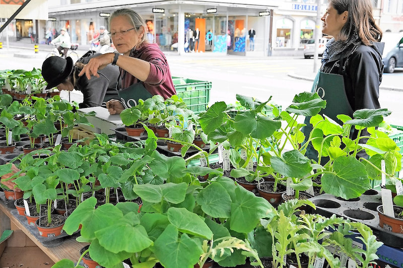 Der alljährlich stattfindende Setzlingsmarkt bietet ein reichhaltiges Angebot an Gemüse-, Salat- sowie Blumen- und Kräutersetzlingen zum Verkauf an. Die Pflanzen stammen aus der Biogärtnerei Neubauer in Erlen bei St. Gallen.