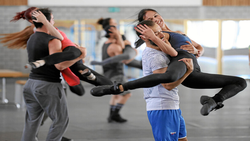 Damit das Musical perfekt wird, brauchte es viele Proben. Die Darsteller übten die teils akrobatischen Posen «trocken». das sah dann zum Beispiel so aus: