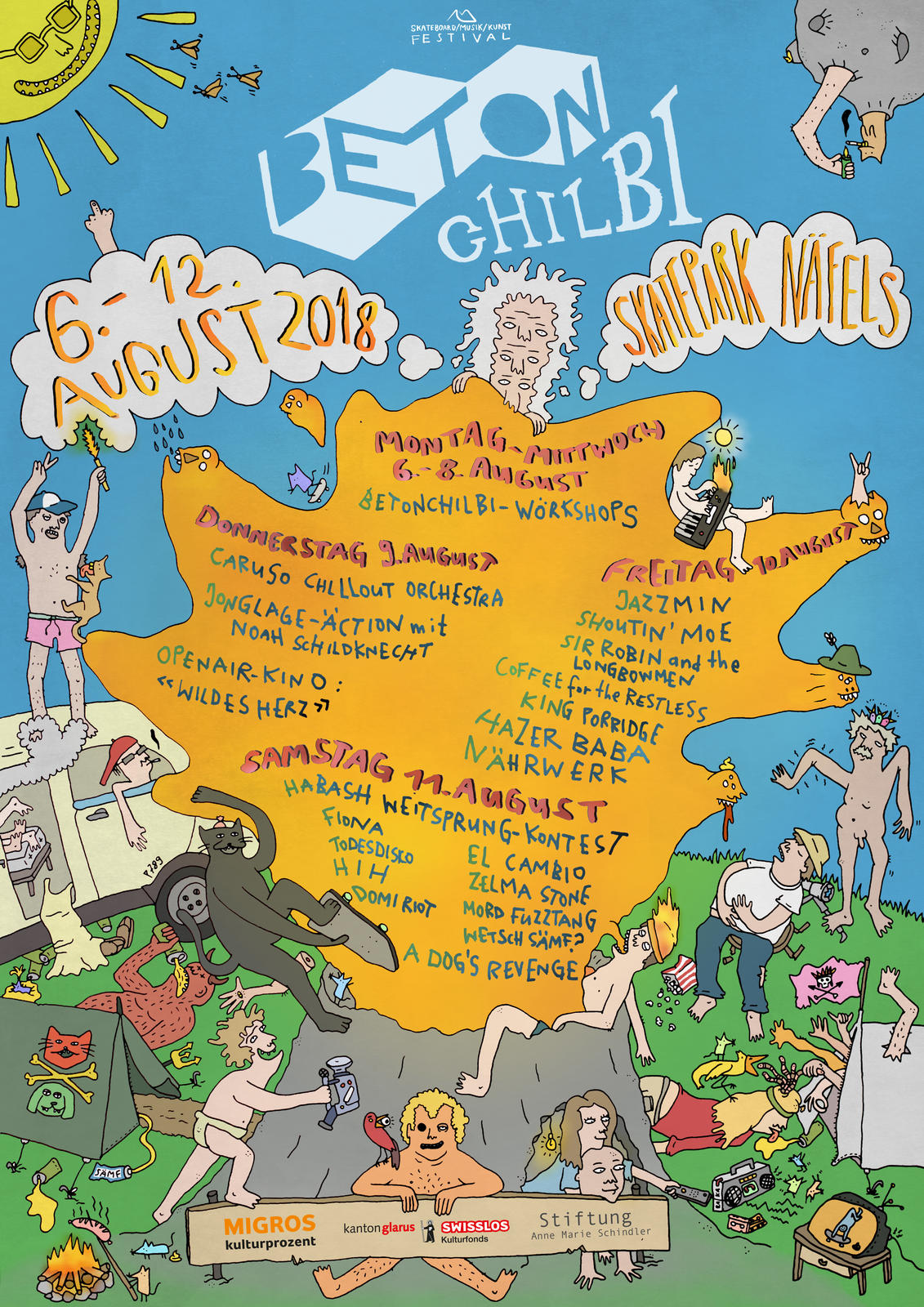 Es wird rocken und knallen, rollen und krachen auf dem Skatepark Näfels. Vom 9. bis 11. August steigt dort nämlich zum dritten Mal die Beton Chilbi. Von Donnerstag bis Samstag geben sich Bands aus dem Glarnerland, der Schweiz, Deutschland und so gar den USA die Klinke in die Hand. Und das alles gibt es für Zuschauer gratis zu sehen.