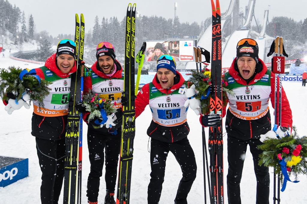 Vier starke Ablösungen sind den Schweizer Männern in der 4x7,5 Kilometer Staffel in Lahti gelungen. Beda Klee, Dario Cologna, Jason Rüesch und Roman Furger laufen auf den sensationellen 2. Platz hinter der Langlauf-Übernation Norwegen.