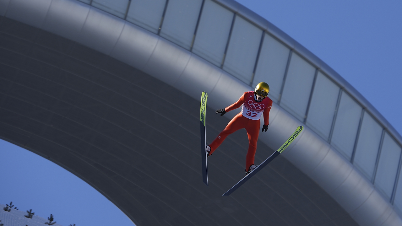 Simon Ammann zeigte beim ersten Wettkampf an seinen siebenten Olympischen Spielen eine starke Leistung, was auch das Abklatschen der Trainer bestätigte. Der Toggenburger flog auf 96 m (Platz 12). Gregor Deschwanden segelte bei ähnlichen Winden ähnlich weit (96,5), zeigte aber die wesentlich besser Landung als Ammann. Der Luzerner wurde mit dem 7. Rang belohnt. Dominik Peter, der nach einer Knieverletzung wieder rechtzeitig fit wurde, setzte nach 91,5 auf (25.)