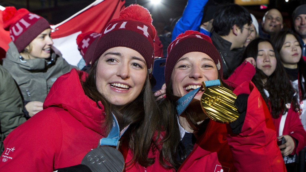 Mathilde Gremaud (links) und Olympiasiegerin Sarah Höfflin wollen vier Jahre nach ihrem Doppelsieg (im Bild) wieder glänzen