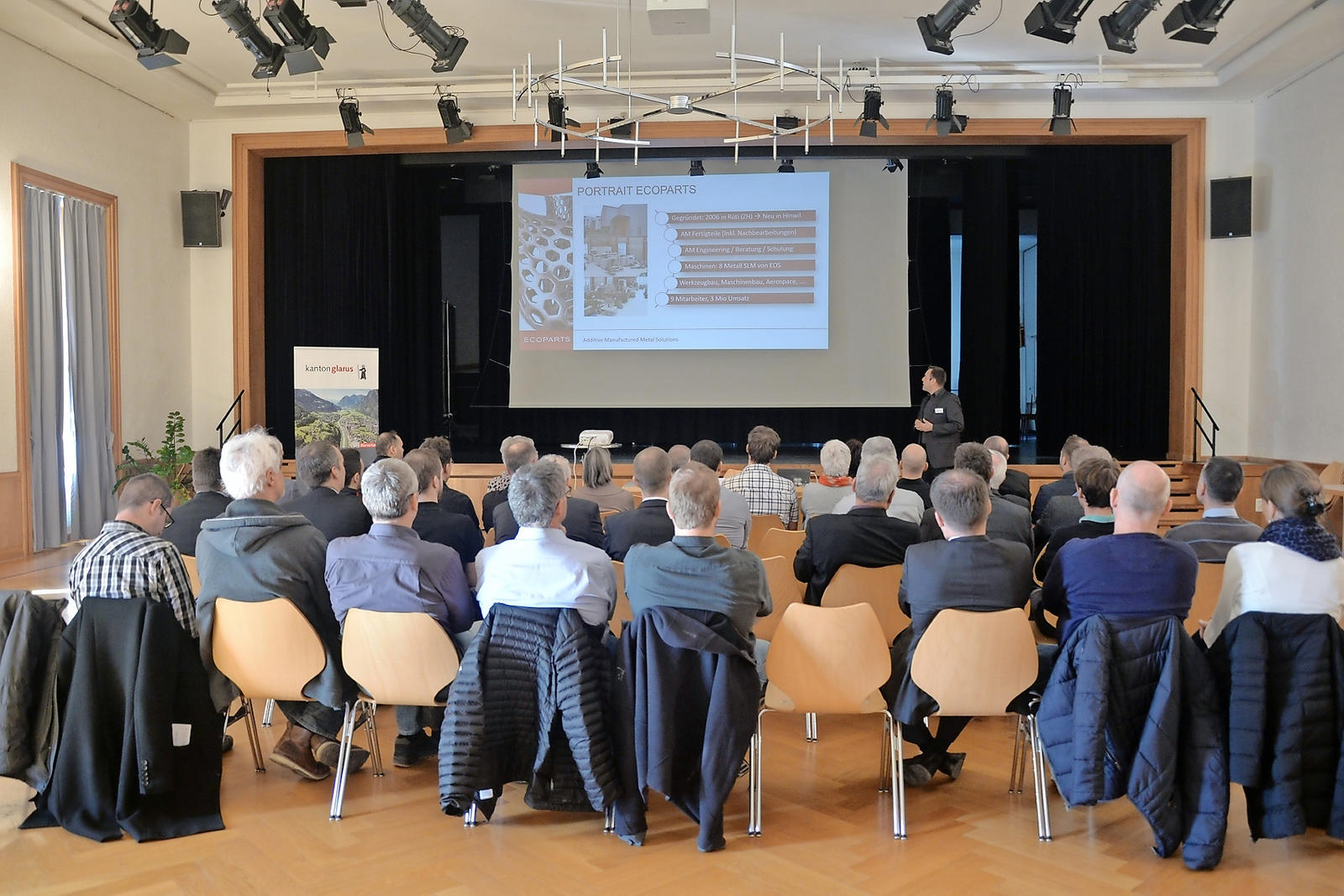 Am Innovationsapéro im «Schützenhaus»-Saal in Glarus hat Adrian Helbling einen Einblick in die additive Fertigung von Metallteilen gegeben – was bisher undenkbare Möglichkeiten bieten kann.