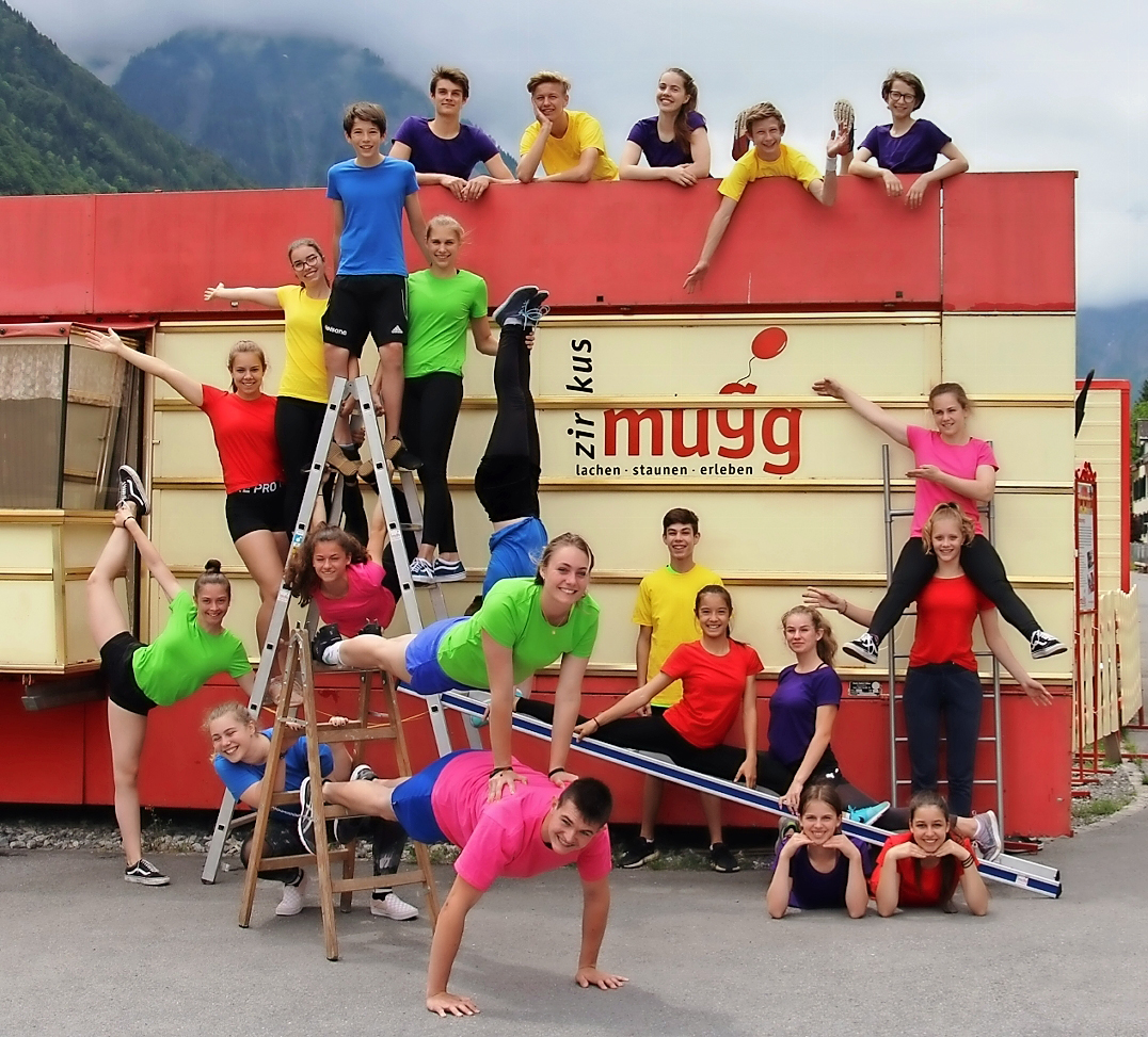 Es ist Sonntagabend fünf Uhr, der Zug fährt in Betschwanden ein, Lachen ertönt und wird vom Geräusch der zahlreichen Rollkoffer untermalt. 32 junge Artistinnen und Artisten aus der ganzen Schweiz treffen in der Zirkusstadt ein. Die gelben Wohnwagen werden bezogen, die Rahmengeschichte gehört und erste Vorbereitungen an der mobilen Bühne getroffen. Das ist der Start für die Vorbereitungswoche der Jugendtournee des Zirkus Mugg, spätestens seit letztem Sommer aus der Sendung «SRF bi de Lüüt» bekannt.