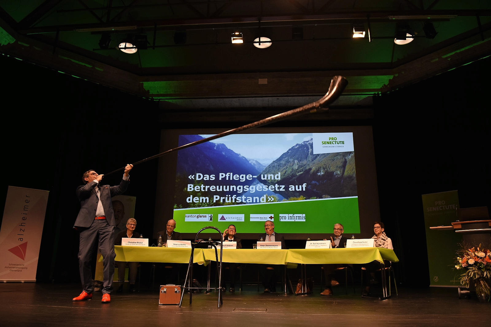 Das Pflege- und Betreuungsgesetz stösst auf Zustimmung wie Skepsis. Dabei kann ein eigentlich trockenes Gesetz sogar unterhaltsam vorgestellt werden. Rund 300 Interessierte haben das Podium in Glarus besucht.