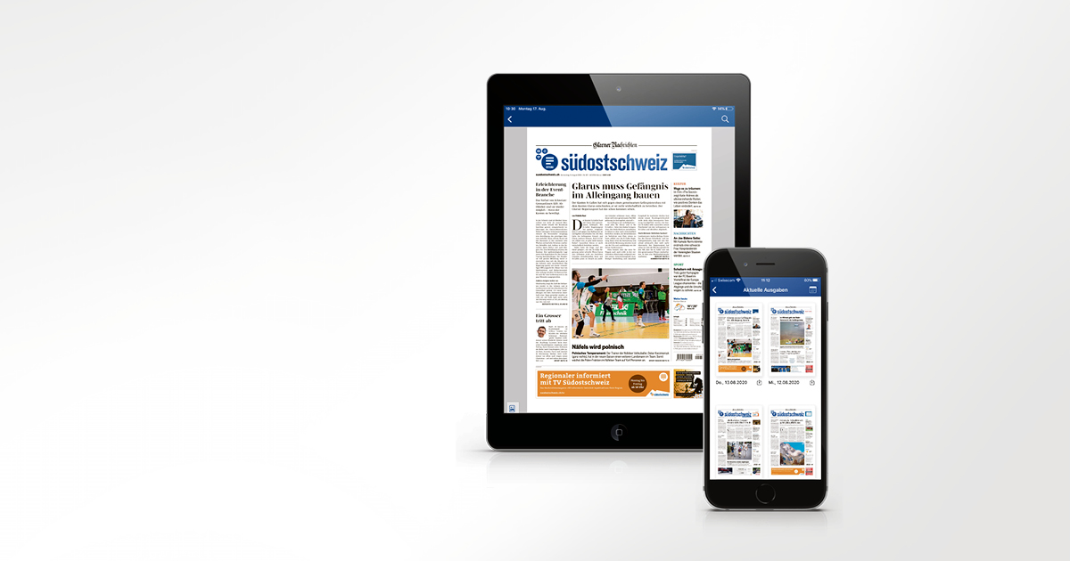 Sie möchten auf dem Laufenden bleiben über alles, was in Ihrer Region passiert, ob zu Hause oder von unterwegs? Dann ist unsere E-Paper App genau das Richtige für Sie – jetzt testen und die digitale Ausgabe der «Südostschweiz Glarner Nachrichten» zwei Wochen gratis lesen.