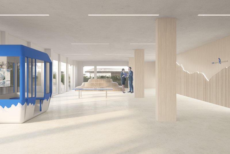 Gleichzeitig wird die grosszügig gestaltete Schalterhalle als Begegnungs- und Multifunktionsraum genutzt, was interne und externe Anlässe im kleineren Rahmen ermöglichen wird. Neben informellen Beratungsmöglichkeiten werde die Schalterhalle mit modernster Technik ausgerüstet sein um das Erlebnis GRB greifbarer zu machen. (eing)