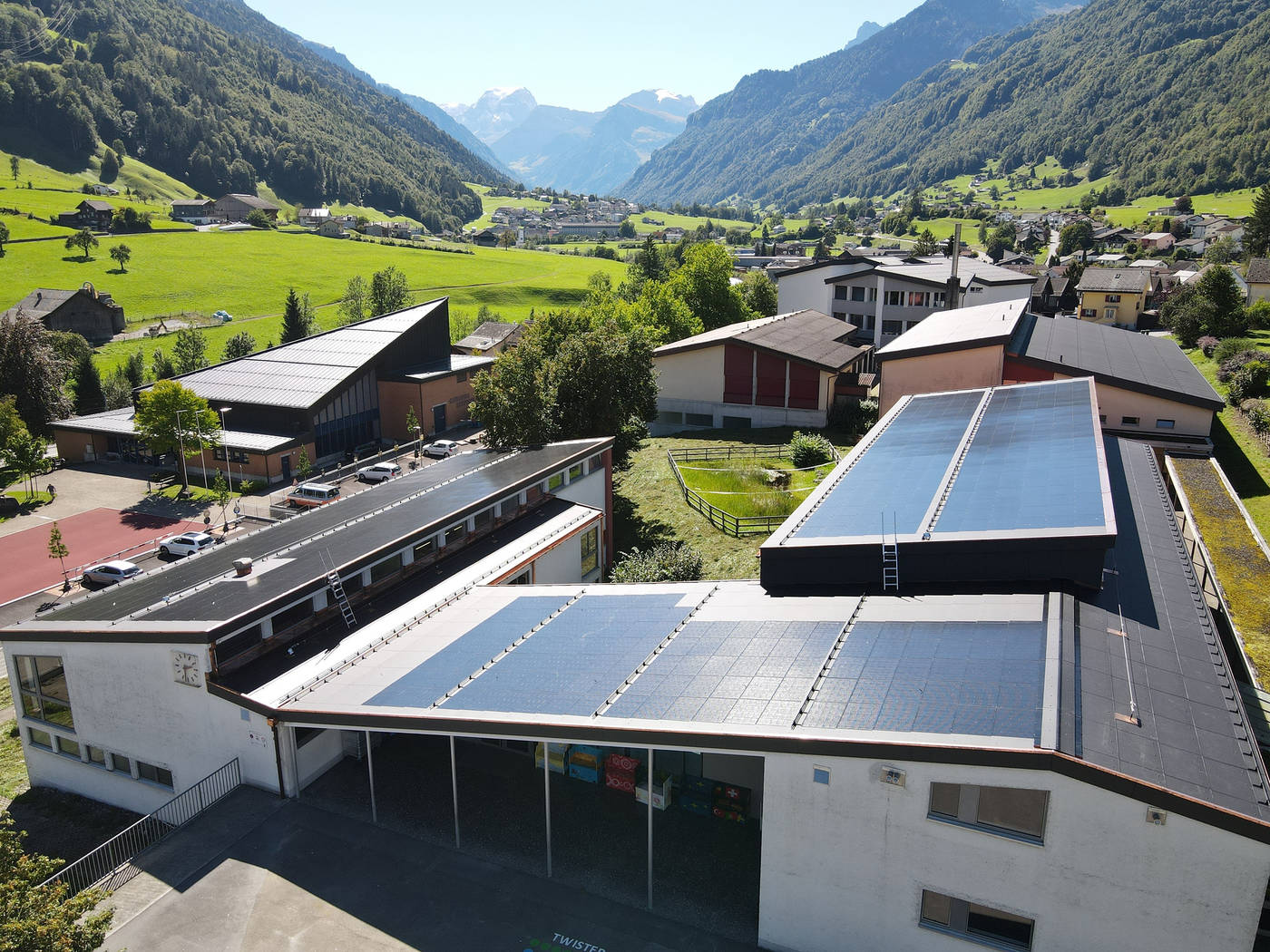 In Betrieb: Die Solaranlage auf dem Dach des Primarschulhauses in Schwanden gehört zu den leistungsstärksten in Glarus Süd.