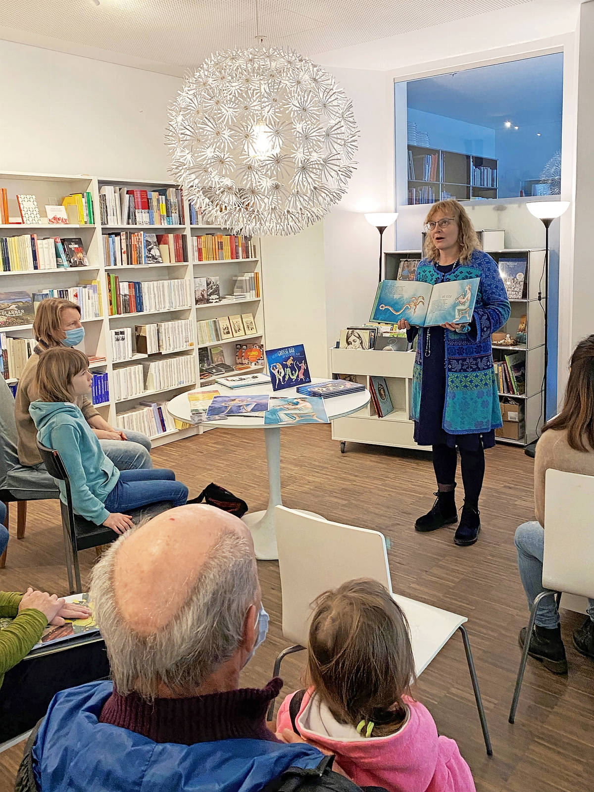 Weil die Autorin krank war: Baeschlin-Verlagsleiterin Gaby Ferndriger präsentiert Cecilia Scorzas Kinderbuch «Wie kam der grosse Bär an den Himmel?».